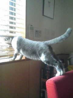 ここが飽きると「基地」へ移動。屋根の上で毛づくろい→また熟睡。ホント寝てばっかり!!寝る子は育つ。・・・これ以上育たなくてよろしい。