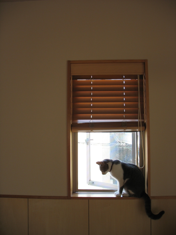 窓から外を見てるのってホントおもしろい。大きなワンコもちっちゃく見える。でも大きなカラスはやっぱりコワい・・・。網戸でツメを研ぐとまたお母さんに叱られるから気をつけなきゃ。