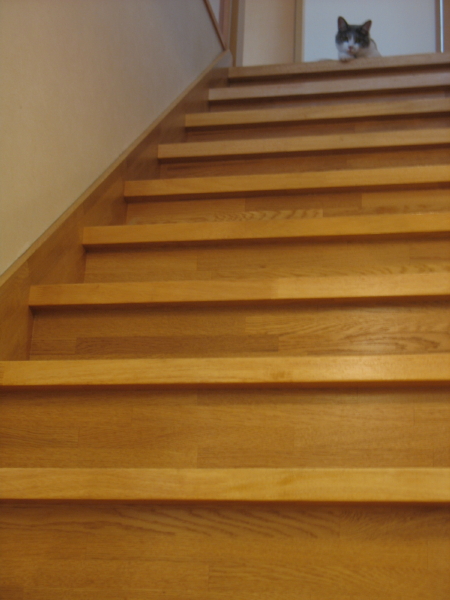 最近のあんずは家中の一番涼しい所を探して日々ウロウロ。ここぞ!と思う所にゴロゴロしまくったあげく、結局階段上に落ち着きました。確かに下から風が吹いてきて、横の窓からも涼しい風がそよそよと・・・さすが。
