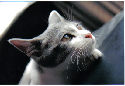 あんずは、白にグレーのぶち猫。もちろんノラにゃんだったのですが、そのグレーの色が何ともいえないブルーがかった不思議な色をしています。最初に診てもらった獣医さんに「ロシアンブルーの血が入っているのではないか」と言われて以来、あんずのパパとママにあってみたくてしょうがありません。